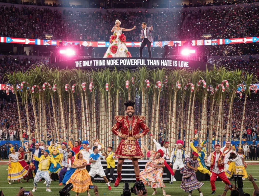 Şov, stadyumun ortasında kurulan devasa şeker kamışı tarlaları ve geleneksel Porto Riko detaylarıyla başladı. Bad Bunny, sahneye “Tití Me Preguntó” ile girerken, sadece bir pop yıldızı gibi değil, bir kültür elçisi gibiydi. Tamamı İspanyolca olan performansı, Super Bowl tarihinde bir solo sanatçı için bir ilk olarak tarihe geçti.